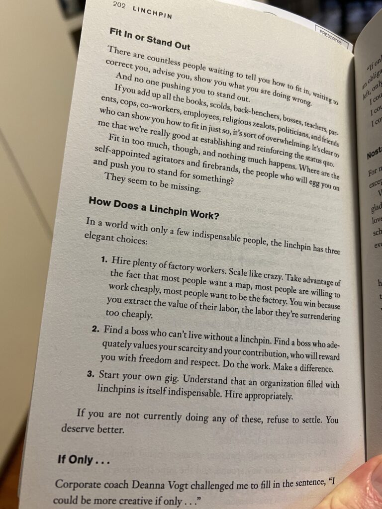 Linchpin, page 202 (in print, and not in the fucking Kindle version that Amazon fucked up).
